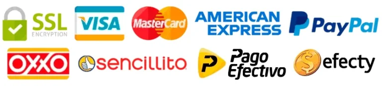 Dependiendo de su país variarán ligeramente las formas de pago. Por norma general puede pagar con tarjeta de crédito, débito o PayPal. En países como Colombia, México, Chile y Perú podrá pagar en efectivo. Automáticamente en la pasarela de pago el importe se adapta a tu moneda local, sumando los impuestos específicos de cada país.
